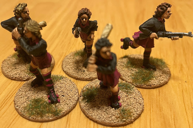 Here are the first of the ‘mostly’ harmless civilians. They are all from Killer B Games’, “Invasion X” line in two different packs, one called, “The Biker and The Mechanic” and the other called, “The Boy and his Dog”. I suspect you can figure out which figure is which without me explaining it. Killer B has release more unarmed civilians that I bought, but they came out after I mailed all of these to be painted. More victims, err, characters to come later.